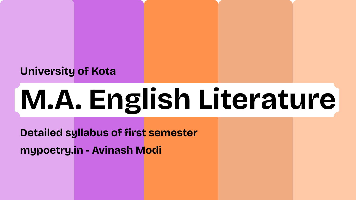 Hello! In this post, I am going to give you a brief idea about the masters course offered by universtiy of Kota, in English literature. Me, Avinash Modi, first semester student will help you to understand the pattern of this exam and make easier to new learner from any background.